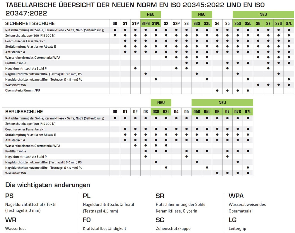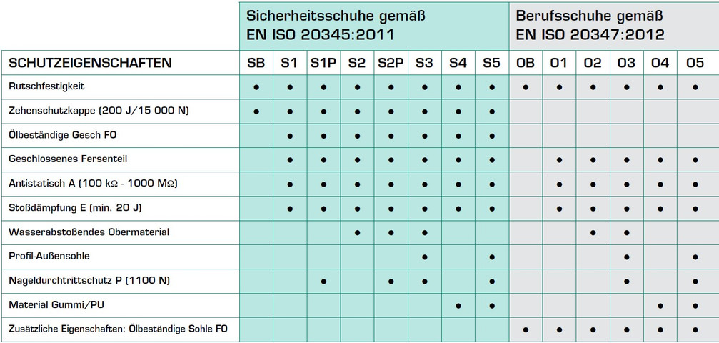 Den Normen EN ISO 20345:2011 und EN ISO 20347:2012 entsprechende Zusatzeigenschaften: