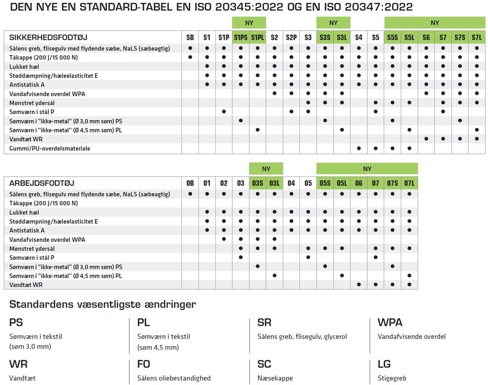 Tillægsegenskaber i standarderne EN ISO 20345:2011 og EN ISO 20347:2012: