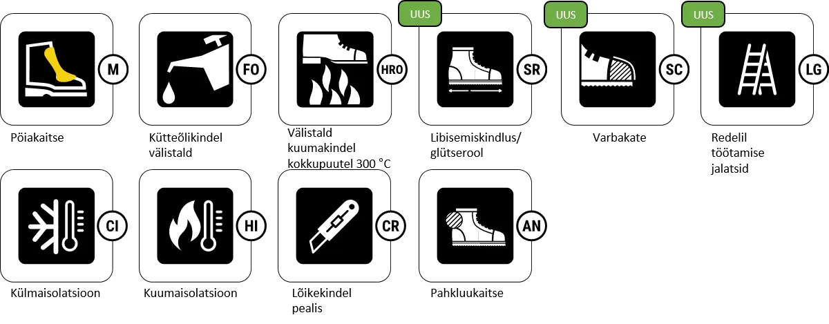 Uus tabel vastavalt standardile EN ISO 20345:2022