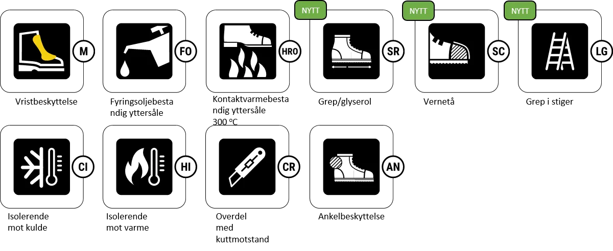 Standard EN ISO 20345:2011 for vernesko er erstattet med den nye standarden EN ISO 20345:2022. Standarden har en overgangsperiode til utgangen av 2027, så det vil fortsatt være produkter på markedet som er sertifisert i henhold til den gamle standarden.