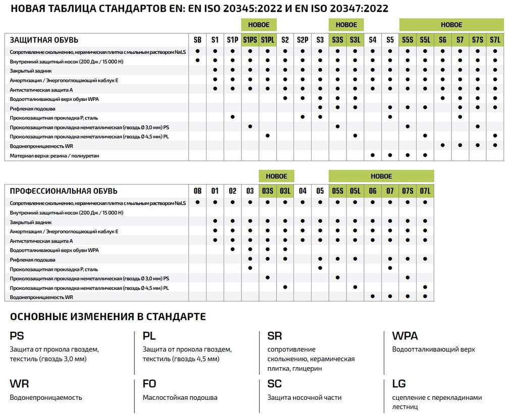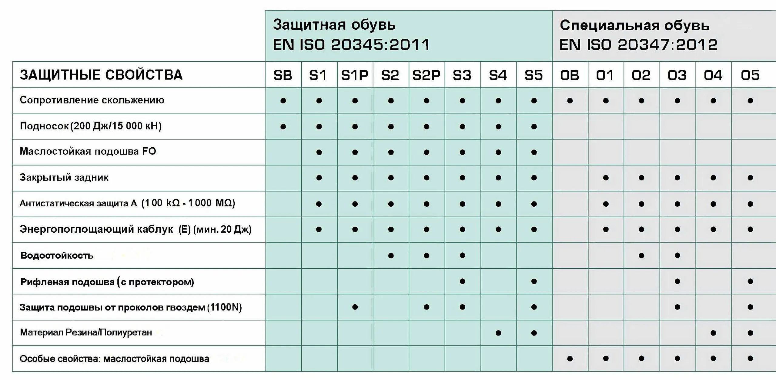 Дополнительные свойства в соответствии со стандартами EN ISO 20345:2011 и EN ISO 20347: 2012: