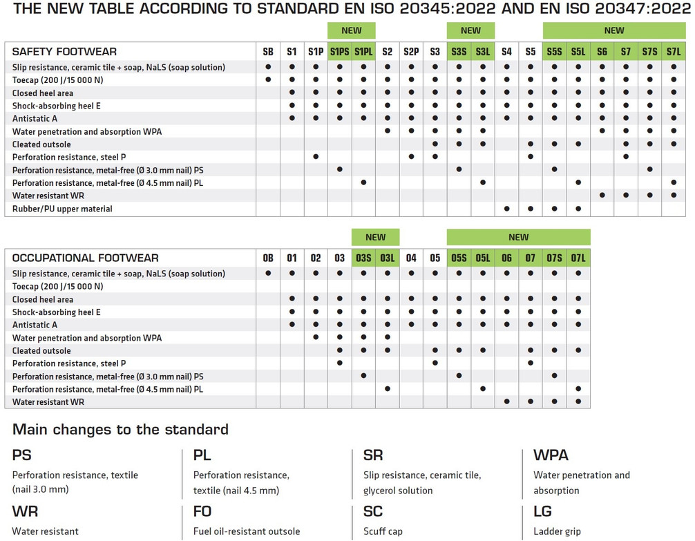 Additional features compliant with standards EN ISO 20345:2011 and EN ISO 20347:2012:
